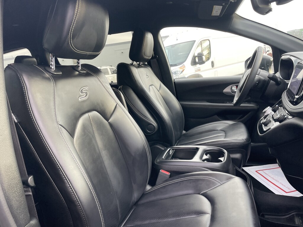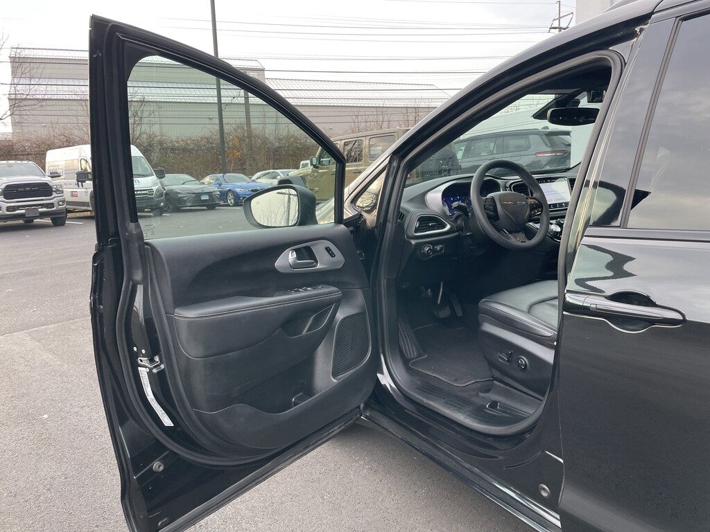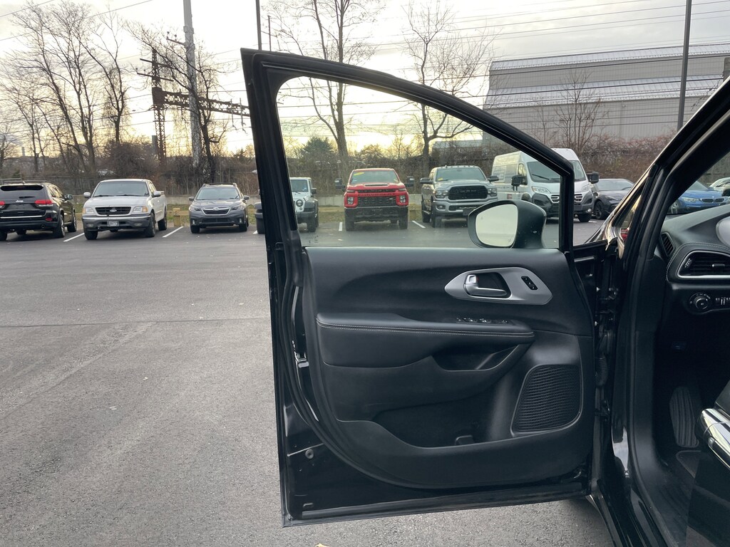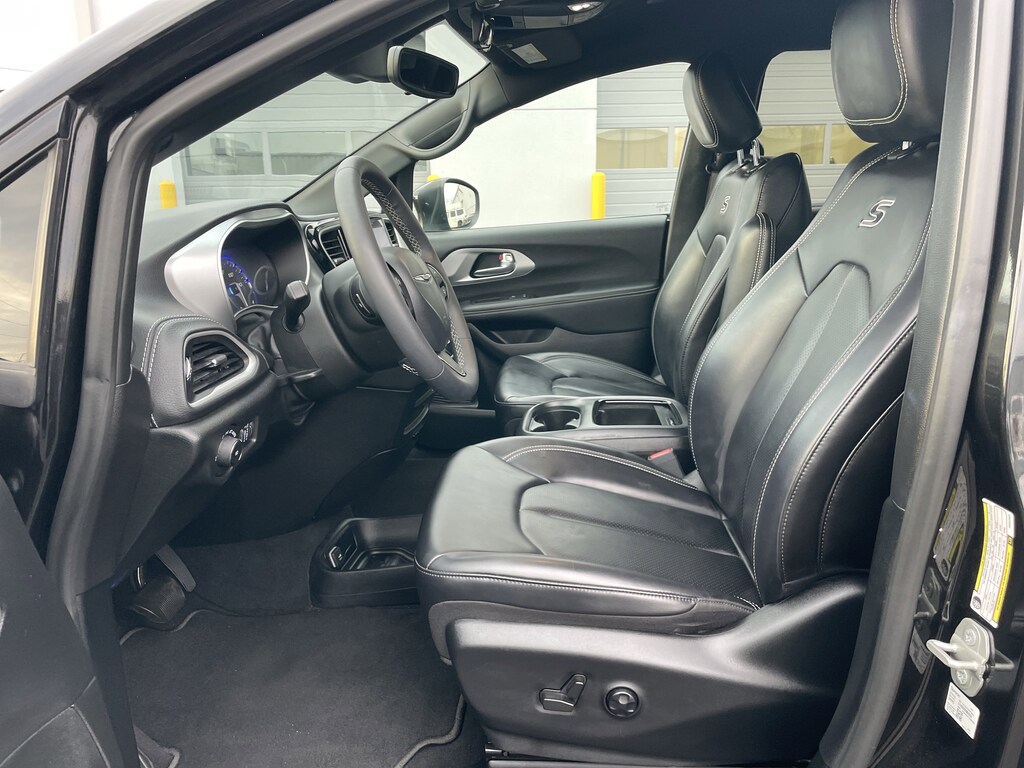 Certified. Anodized Ice Cave Accents, Anodized Ink Badging, Black Day Light Opening Moldings, Black Stow 'N Place Roof Rack, Caprice Leatherette Bucket Seats w/S Logo, Piano Black Interior Accents, Premium Fascia Upper/Lower Grille w/Black Surround, Premium Rear Fascia Black, Quick Order Package 27L, S Appearance Package, S Badge, Wheels: 20" x 7.5" S-Model Aluminum Design 1. Brilliant Black Crystal Pearlcoat 2023 Chrysler Pacifica Touring L AWD 9-Speed 948TE Automatic 3.6L V6 24V VVT