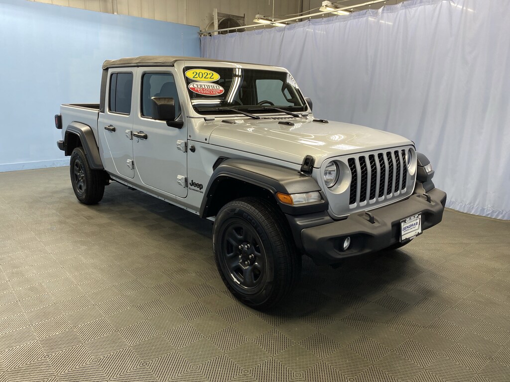 Certified. Silver Zynith Clearcoat 2022 Jeep Gladiator Sport 3.6L V6 24V VVT 8-Speed Automatic 4WD CARFAX One-Owner.