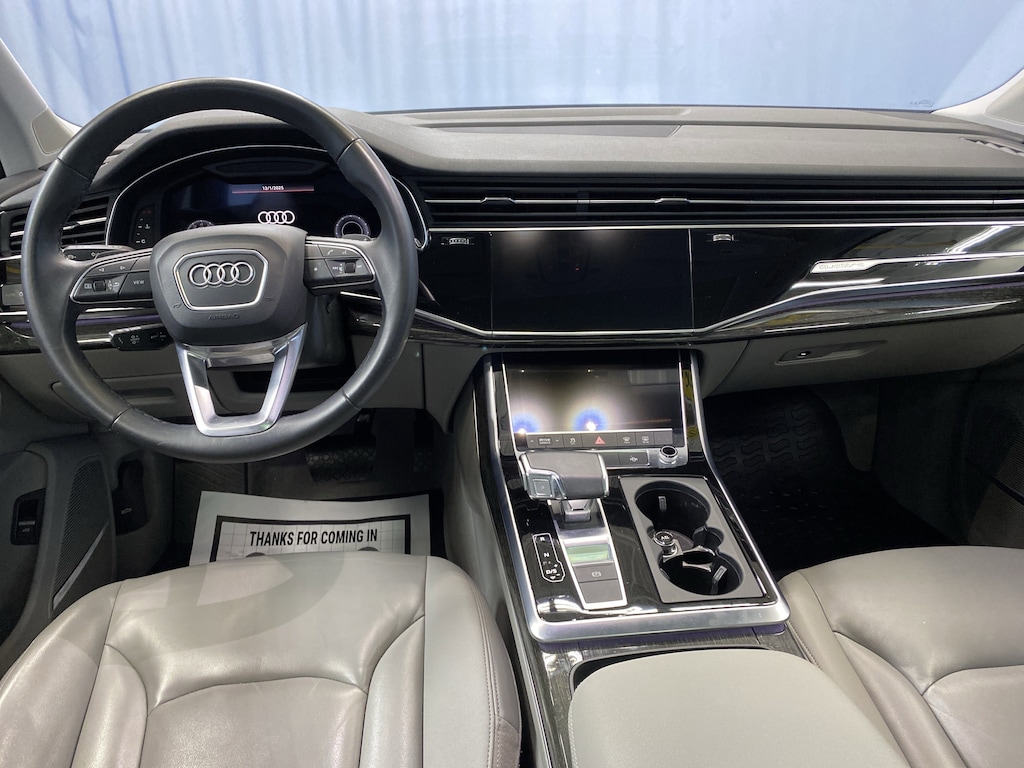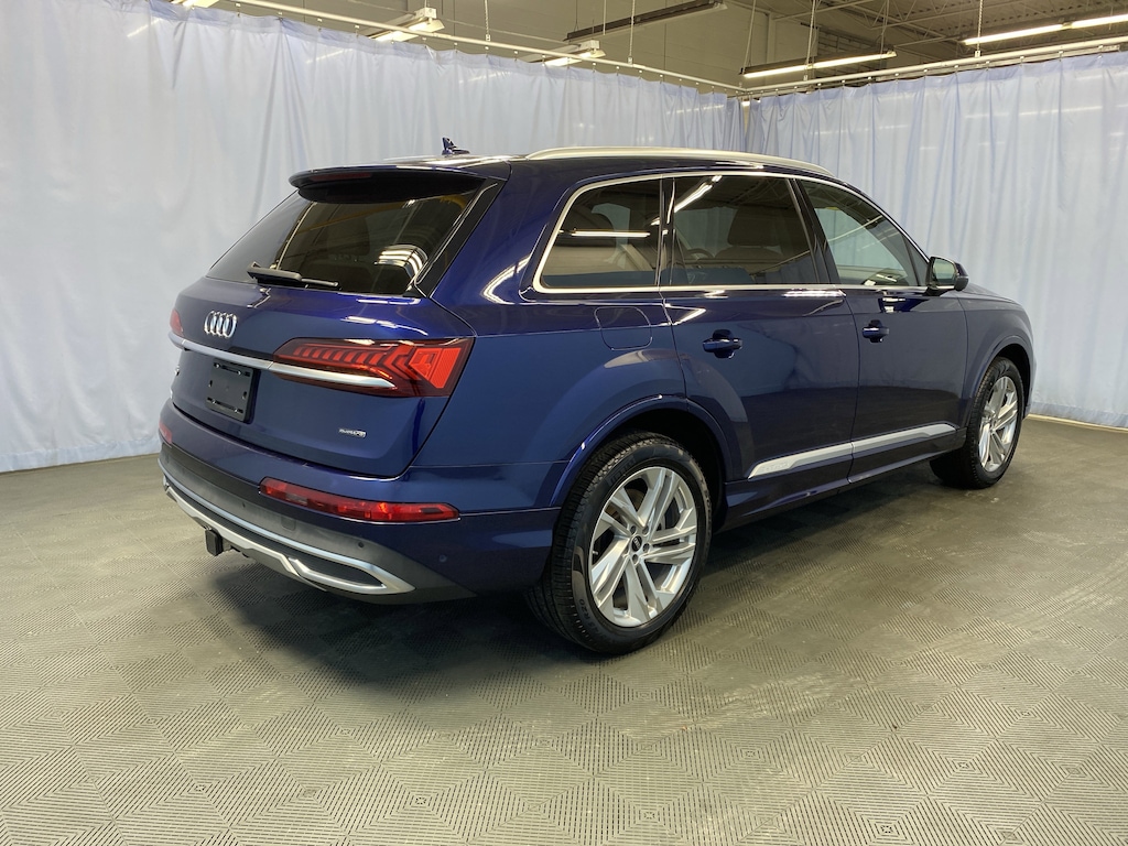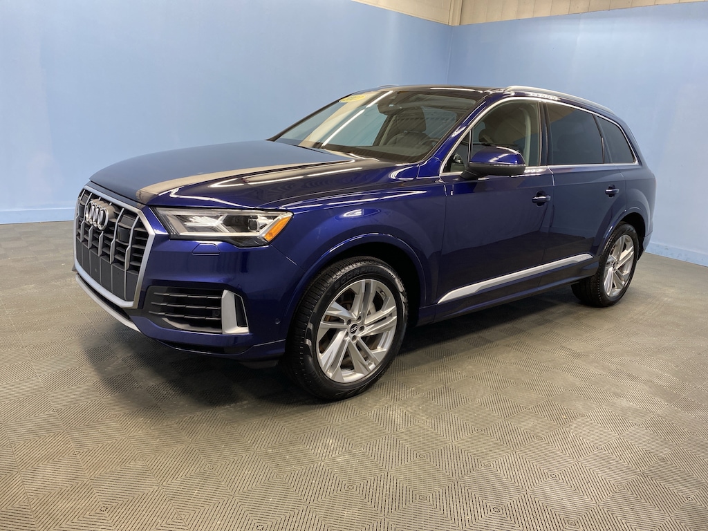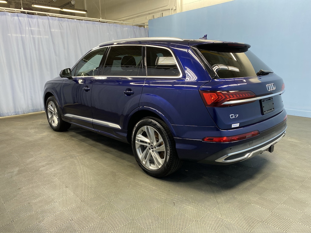 Blue Metallic 2022 Audi Q7 55 Premium Plus quattro 3.0L TFSI 8-Speed Automatic with Tiptronic quattro CARFAX One-Owner.