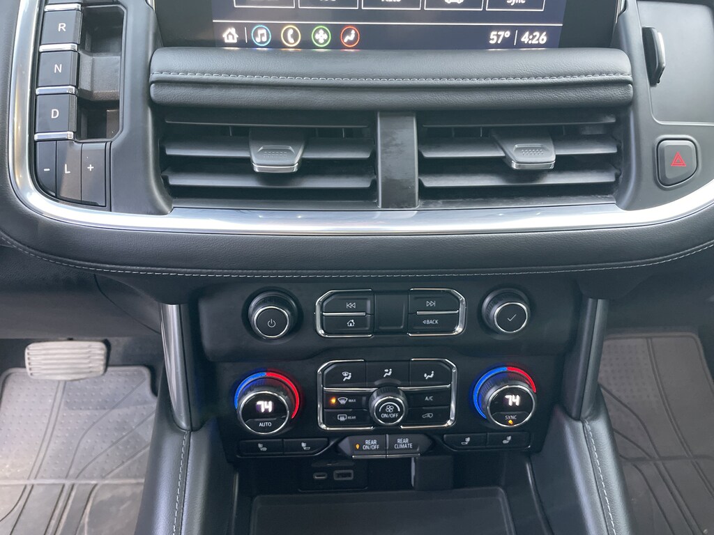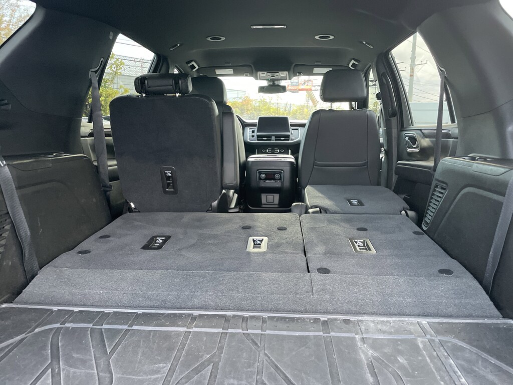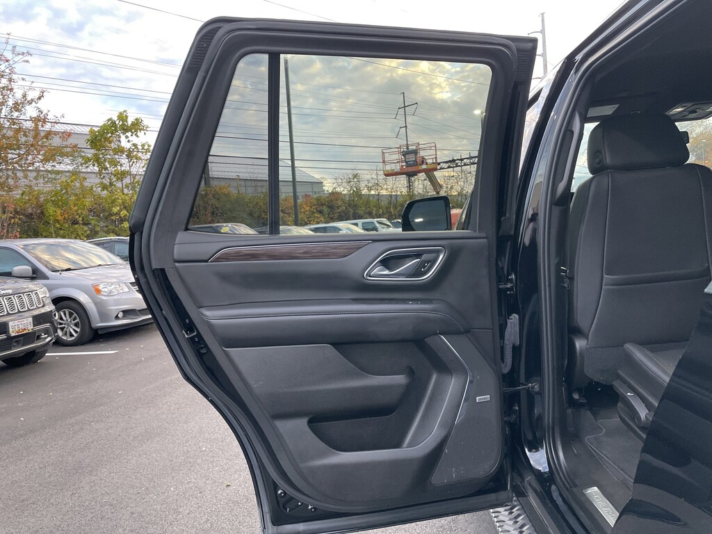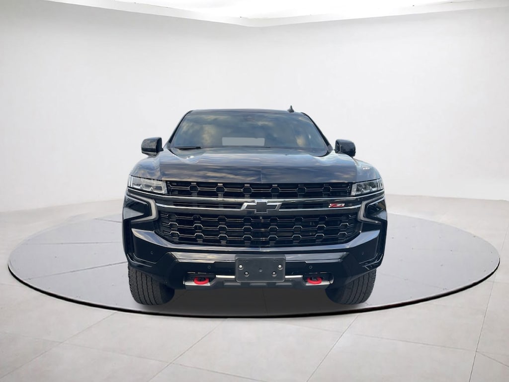4WD, Black Leather, 1st & 2nd Row Color-Keyed Carpeted Floor Mats, 2 USB Data Ports, 2-Speed Active Electronic AutoTrac Transfer Case, 2nd Row Pwr Release 60/40 Split-Folding Bench Seat, 3rd Row 60/40 Power-Folding Split-Bench Seat, 9 Speakers, AM/FM radio: SiriusXM with 360L, Auto High-beam Headlights, Auto-Dimming Inside Rear-View Mirror, Automatic Heated Steering Wheel, Automatic temperature control, Black Tubular Assist Steps, Bose 9-Speaker Stereo Audio System Feature, Brake assist, Bright Front & Rear Door Sill Plates, Bumpers: body-color, Color-Keyed Carpeting Floor Covering, Delay-off headlights, Driver & Front Outboard Passenger Airbags, Driver Alert Package, Electronic Stability Control, Floor Console w/Storage Area, Four wheel independent suspension, Front & Rear Park Assist, Front High-Approach Angle Fascia, Hands-Free Rear Power Programmable Liftgate, HD Radio, HD Surround Vision, Heated 2nd Row Outboard Seats, Heated door mirrors, Hill Descent Control, Infotainment Display, Lane Change Alert w/Side Blind Zone Alert, Lane Keep Assist w/Lane Departure Warning, Leather-Wrapped Steering Wheel, LED Daytime Running Lamps, License Plate Front Mounting Package, Luxury Package, Memory Settings, Memory Settings for Driver, Outside Heated Power-Adjustable Mirrors, Power driver seat, Power Liftgate, Power Tilt & Telescopic Steering Column, Preferred Equipment Group 2Z7, Premium audio system: Chevrolet Infotainment 3, Radio: Chevrolet Infotainment 3 Plus System, Rain sensing wipers, Rear Cross Traffic Alert, Rear Pedestrian Alert, Red Horizontal-Mounted Recovery Hooks, Remote Start, Security system, SiriusXM Radio w/360L, Speed control, Spoiler, Universal Home Remote, Wheels: 20" x 9" Machined Aluminum. Black 2021 Chevrolet Tahoe Z71 4WD 10-Speed Automatic with Overdrive EcoTec3 5.3L V8