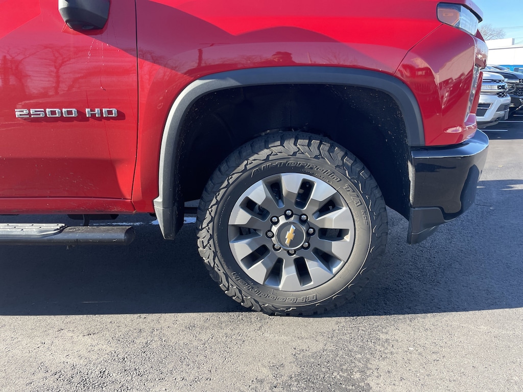 6-Speed Automatic, 4WD, Black Cloth, 170 Amp Alternator, 2-Speed Electronic Shift Transfer Case, 220 Amp Alternator, 3.5" Diagonal Monochromatic Display DIC, Black Mirror Caps, Bluetooth® For Phone, Body Color Front Grille, Color-Keyed Carpeting Floor Covering, Deep-Tinted Glass, Electronic Cruise Control w/Set & Resume Speed, Front Rubberized Vinyl Floor Mats, Heated Vertical Trailering Mirrors, Locking Tailgate, Manual Tailgate Function w/No EZ Lift, Manual Tilt-Wheel Steering Column, Power Door Locks, Power Front Windows w/Driver Express Up/Down, Power Front Windows w/Passenger Express Down, Power Rear Windows w/Express Down, Preferred Equipment Group 1CX, Rear 60/40 Folding Bench Seat (Folds Up), Rear Rubberized Vinyl Floor Mats, Remote Keyless Entry, Snow Plow Prep/Camper Package, Standard Tailgate, Suspension Package. Red Hot 2022 Chevrolet Silverado 2500HD Custom 4WD 6-Speed Automatic 6.6L V8