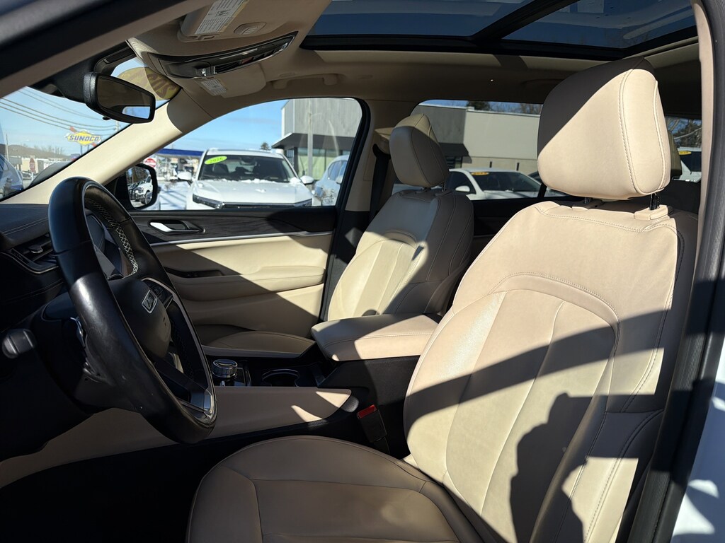 2021 Jeep Grand Cherokee L Limited Grand Cherokee L Limited, 4D Sport Utility, 3.6L V6 24V VVT, 8-Speed Automatic, 4WD, Bright White Clearcoat, Wicker Beige/Black Leather. 3.6L V6 24V VVT 8-Speed Automatic