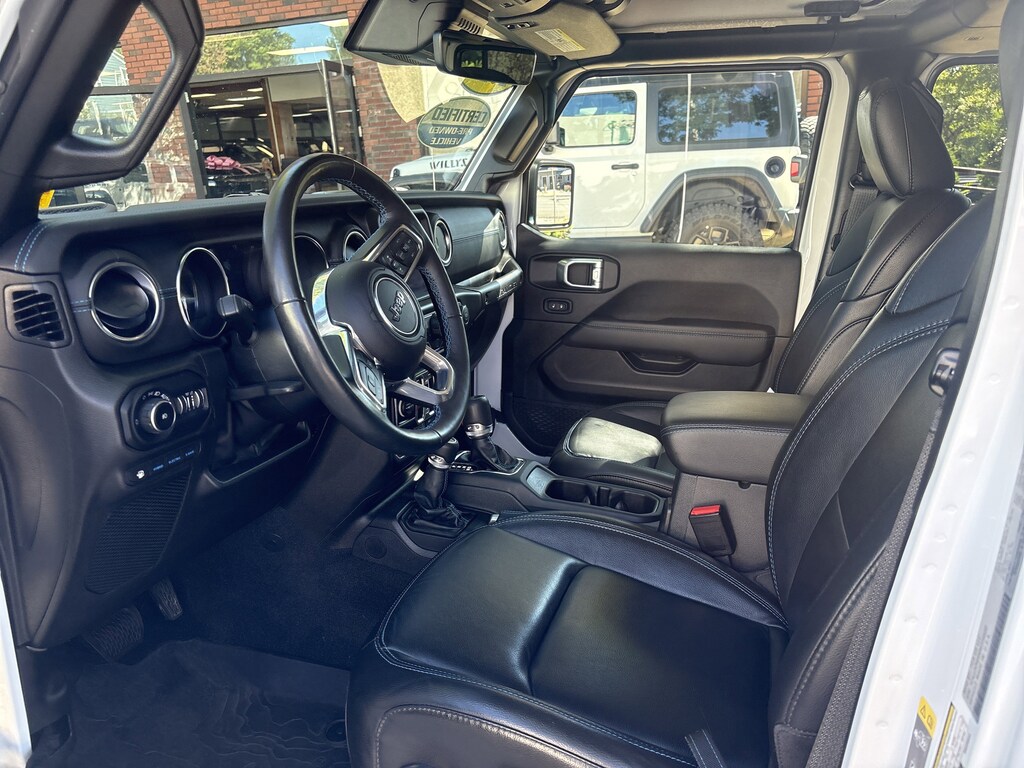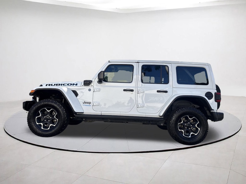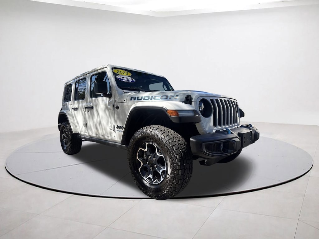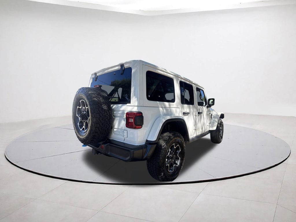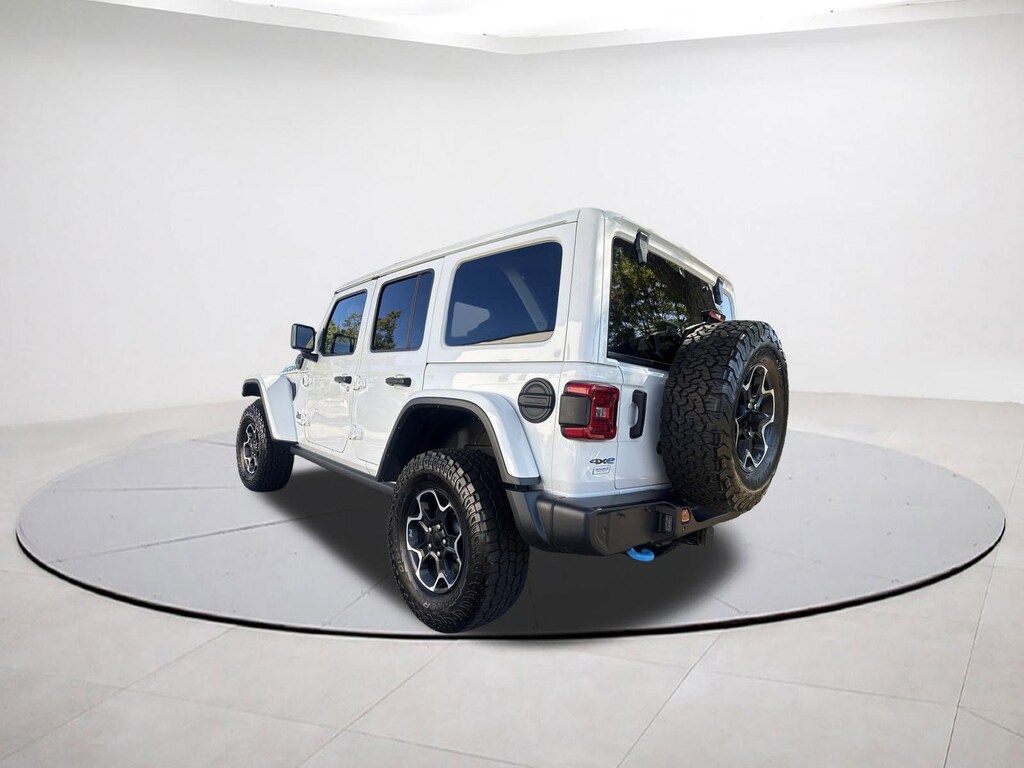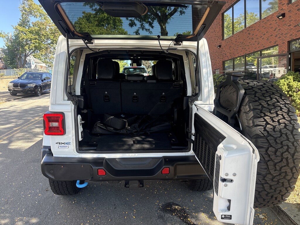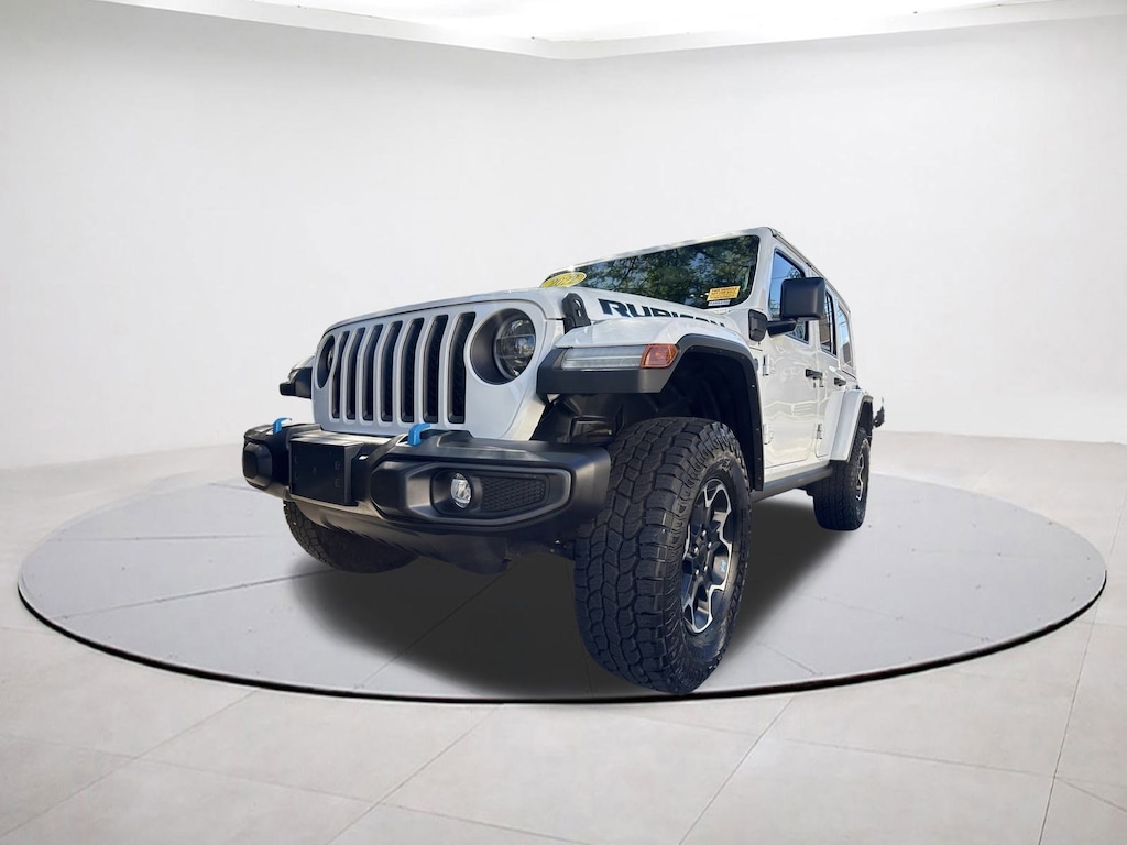 2.0L I4 DOHC, 4-Wheel Disc Brakes, 4.10 Rear Axle Ratio, 7 & 4 Pin Wiring Harness, 700 Amp Maintenance Free Battery, 9 Speakers, ABS brakes, Adaptive Cruise Control w/Stop, Advanced Brake Assist, Advanced Safety Group, Air Conditioning, Alloy wheels, AM/FM radio: SiriusXM, Apple CarPlay/Android Auto, Auto High Beam Headlamp Control, Auto-dimming Rear-View mirror, Automatic temperature control, Auxiliary Switches, Blind Spot & Cross Path Detection, Body Color 3-Piece Hard Top, Body Color Rubicon Highline Flare, Brake assist, Class II Receiver Hitch, Cold Weather Group, Compass, Delay-off headlights, Driver door bin, Driver vanity mirror, Dual front impact airbags, Dual front side impact airbags, Electronic Stability Control, Emergency communication system: SiriusXM Guardian, Freedom Panel Storage Bag, Front anti-roll bar, Front Bucket Seats, Front Center Armrest w/Storage, Front dual zone A/C, Front fog lights, Front License Plate Bracket, Front reading lights, Full Speed Forward Collision Warning Plus, Fully automatic headlights, Garage door transmitter, Heated door mirrors, Heated Front Seats, Heated Steering Wheel, Illuminated entry, Integrated roll-over protection, Leather steering wheel, Low tire pressure warning, MOPAR All-Weather Floor Mats, Navigation System, Occupant sensing airbag, Outside temperature display, Panic alarm, ParkSense Rear Park Assist System, ParkView Rear Back-Up Camera, Passenger door bin, Passenger vanity mirror, Performance Suspension, Power door mirrors, Power steering, Power windows, Premium Cloth Low-Back Bucket Seats, Quick Order Package 29V, Radio data system, Radio: Uconnect 4C Nav w/8.4" Display, Rear anti-roll bar, Rear reading lights, Rear Window Defroster, Rear Window Wiper/Washer, Remote keyless entry, Remote Start System, Safety Group, Security system, Speed control, Split folding rear seat, Steering wheel mounted audio controls, Tachometer, Telescoping steering wheel, Tilt steering wheel, Traction control, Trailer Tow & HD Electrical Group, Trip computer, Variably intermittent wipers, Voltmeter. Bright White Clearcoat 2022 Jeep Wrangler Unlimited Rubicon 4xe 4WD 8-Speed Automatic 2.0L I4 DOHC